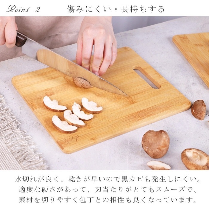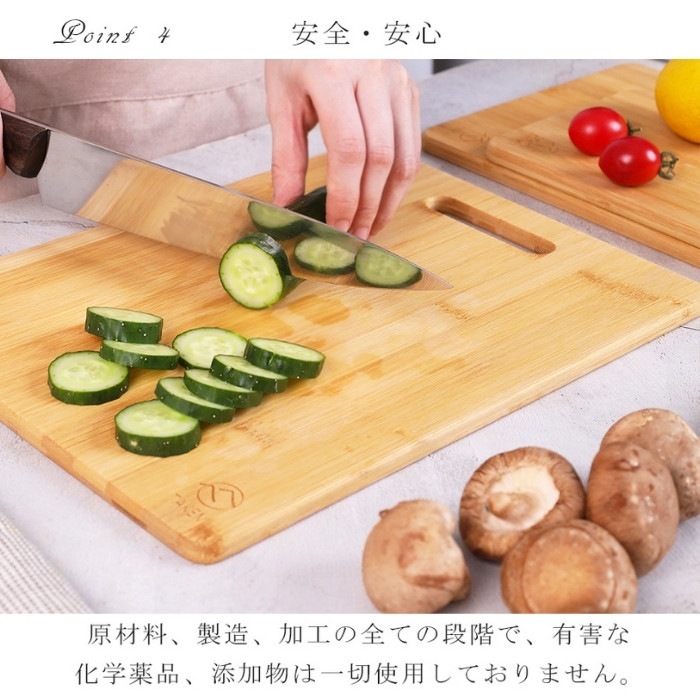 サイズ(cm):大33*24*1 /中28*21.6*1 /小20*15*1 材質:天然竹(大豆油コーティング) ※食洗機に対応しておりません。 まな板は直接口に入る物に触れますので、薬品や塗料を使用せず大豆油で仕上げてあります。 モニターの発色の具合によって実際のものと色が異なる場合がございます。