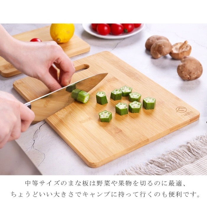 天然素材のぬくもりと美しさを! TAKEMI(竹美)の竹製まな板3点セット! 豪華なご馳走を準備するにも便利だし、“ちょこっと”使いにもちょうどいい! お引越し祝いなどにおすすめのプレゼントです! どんな素材でも大きなまな板でトントントン、 小さなまな板は切ってそのままサービングボードとして食卓へ、小さくて軽いのでサッと気軽に使えます。竹製はとても軽量なので、どこでも使えてアウトドアでも大活躍できます。 【TAKEMI竹のまな板の嬉しい 5つのポイント】 よく見かけるカッティングボードは木製が多いと思いますが、竹製のカッティングボードにはたくさんのメリットがあります。 1.天然の抗菌・防臭効果 竹に優れた抗菌・防臭効果があり、食材のニオイ移りも防ぎます。食品に対しても安全な素材で、バクテリアの繁殖を抑えると言われています。 2.乾きやすい 水切れが良く、乾きが早いので黒カビも発生しにくい 3.傷みにくく、長持ちする 適度な硬さがあって、刃当たりがとてもスムーズで、素材を切りやすく包丁との相性も良くなっています。 4.安全・安心 原材料、製造、加工の全ての段階で、有害な化学薬品、添加物は一切使用しておりません。直接口に入る物に触れますので、薬品や塗料を使用せず食用大豆油で仕上げてあります。 5.環境にも優しい 竹は最小限の土地で繰り返し利用できる画期的な天然資源。環境問題・温暖化問題の一因である森林伐採を食い止める、有効な資源活用法の一つであるといえます。 【用途いろいろ】 竹素材感が食材の色味を引き立ててくれるので薬味などの野菜を乗せて器としてお使いいただけます。パンやチーズなどを乗せてそのまま食卓に出せたりいろいろな用途でご使用いただけます。 【お手入れ方法】 ★表面の色が薄くなってきたら、キッチンペーパーか薄手のふきんなどに少量のオリーブオイルをしみこませ、まな板の表面を拭く。これで色がよみがえります。 【使用上の注意】 1.長時間水につけたり放置したりせず、こまめに洗って下さい。 2.洗った後は良く水を切り、直射日光の当たらない風通りの良い場所に置いて下さい。 3.急な乾燥や熱で割れたり反ったりする可能性がありますので食器乾燥機は使用しないで下さい。 4.漂白剤は変色の恐れがありますので極力お避け下さい。 5.金属製のたわしなどを使用すると、竹の繊維がささくれてしまうことがありますのでご注意下さい。