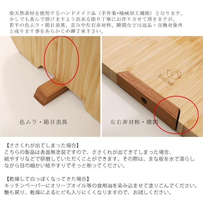 サイズ(cm):(約)32x29.5x1.8(h) 重量:(約)970g 材質:天然竹(大豆油コーティング) 食洗機・乾燥機の使用不可 適切に管理されたFSC認証を受けている竹素材のみを採用(FSC100%) まな板は直接口に入る物に触れますので、薬品や塗料を使用せず大豆油で仕上げてあります。 モニターの発色の具合によって実際のものと色が異なる場合がございます。