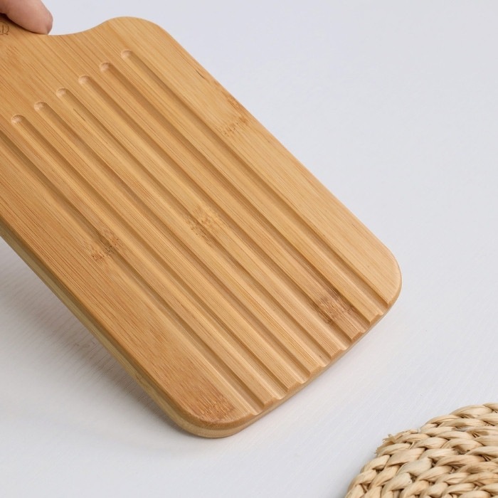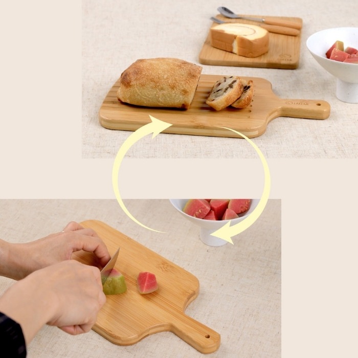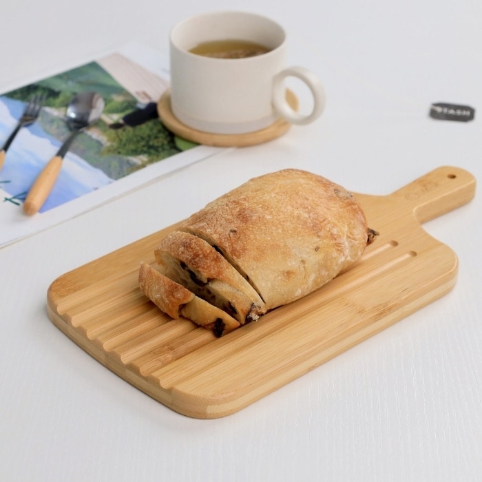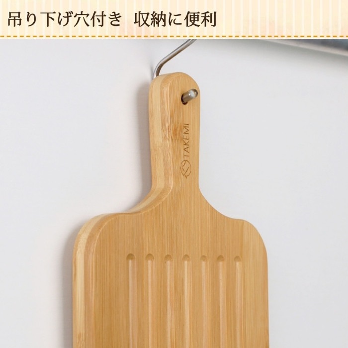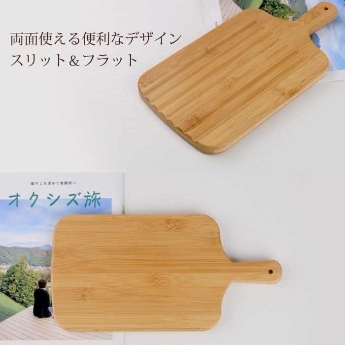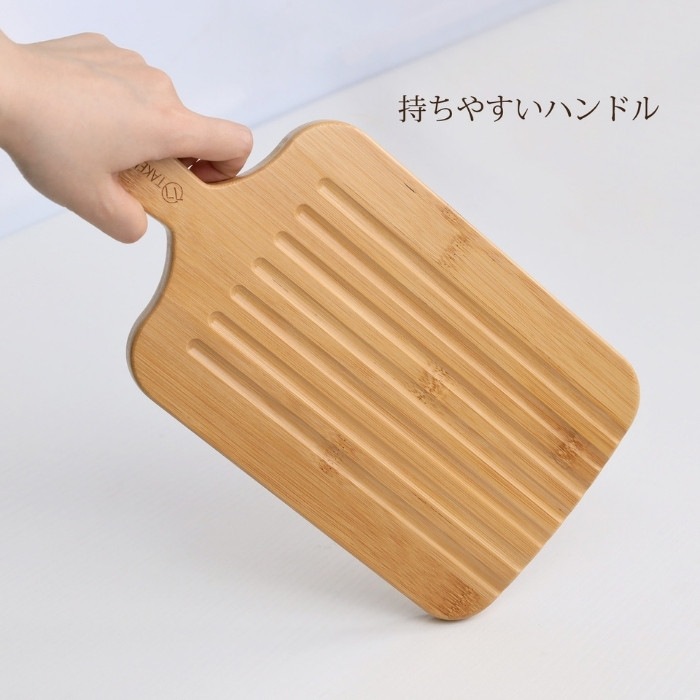 竹美TAKEMIの天然竹製コンパクトまな板。片面に溝加工があり、用途に応じて両面使えます。 通気スリット付きで熱や湿気を逃す設計。パンや焼きたてのお菓子の蒸気を逃し、サクサク感をキープします。 本製品は適切に管理されたFSC認証を受けている竹素材のみを採用(FSC100%)しております。 竹には優れた抗菌・防臭効果があり、食材のニオイ移りも防ぎます。 水切れが良く、乾きが早いので黒カビも発生しにくいです。 また、竹は最小限の土地で繰り返し利用できる理想的な天然素材です。継続的に竹素材を使用することは、様々な環境問題を食い止める為の有効な手段の一つであるとされています。