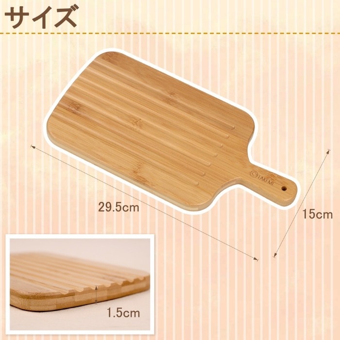 サイズ:(約)長さ29.5x幅15x厚み1.5cm; 重量:(約)360g 材質:天然竹 表面加工:ウレタン塗装 ※食洗機に対応しておりません。