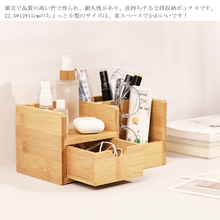 サイズ:約22.5*12*11cm(引き出し部:約11*9.5*5cm) 材質:天然竹(透明ラッカー塗装) 天然素材をそのまま使用し、一つひとつ手作りされております。素材の性質上、微妙に節目などの特徴の差がございます。風合いや個性としてお楽しみ頂けましたら幸いです。