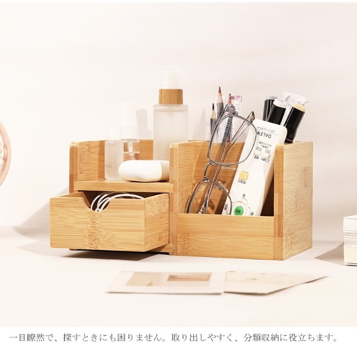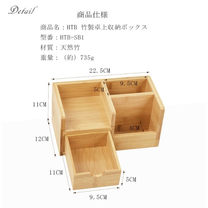 天然素材のぬくもりと美しさを! HTBの竹製収納ボックス! 頑丈で品質の高い竹で作られ、防錆、防蝕、耐久性もあり、長持ちする収納ボックスです。素材の良さを生かした優しい風合いは、落ち着きと温かみが感じられます! ●一目瞭然で、探すときにも困りません。取り出しやすく、分類収納に役立ちます。 ●常にデスクの周りをきれいな状態に整えていくと、仕事の効率も上がりますよ♪ ●コスメボックスとしてのご使用もおすすめ。収納力と使いやすさにこだわった充実の機能で、毎日のメイクが楽しくなります。 ●優れた竹質、シンプルなデザイン、デリケートな細部設計などで、和室にも洋室にもよく似合います。 ●竹の優しさを損なわないよう、角を丸みにして曲線のある優しい形で仕上げました。お子さま用にも安心です。 ●表面は竹の材質を採用されているので、ホコリなどの汚れがあっても雑巾で拭くだけできれいになります。 ●オフィス、書斎、寝室、リビング、学校、子ども部屋など様々な場所でお気楽にお使えます。