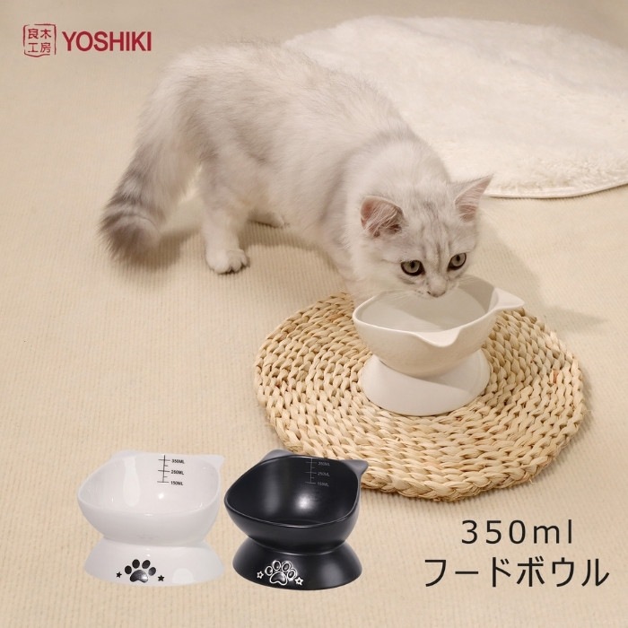 サイズ:約13*9.4cm;重量:約426g。 材質:陶器 特徴:陶器の美しさを生かしたシンプルで可愛らしいデザイン。小型~中型の猫ちゃんや小型犬に最適!