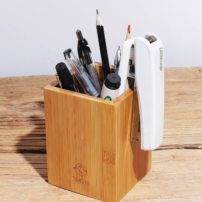 竹製のおしゃれなペン立て♪多用途の小物入れ 散らかりがちなハサミ、マーカー、修正テープなど様々な文房具を一か所に収納できます。 TAKEMI竹美のペン立ては使い方色々!例えば、、 ・デスク:ペン立て、文房具収納 ・キッチン:カトラリーケース ・リビング:リモコン置き ・洗面台:メガネやくし置き ・玄関:ボールペン立て、小物収納 etc… ご自宅やオフィスの様々な場所に馴染む、おしゃれでナチュラルなデザインです。