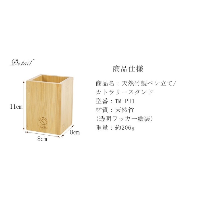 サイズ:幅8cmx奥行き8cmx高さ11cm 材質:天然竹(透明ラッカー塗装)