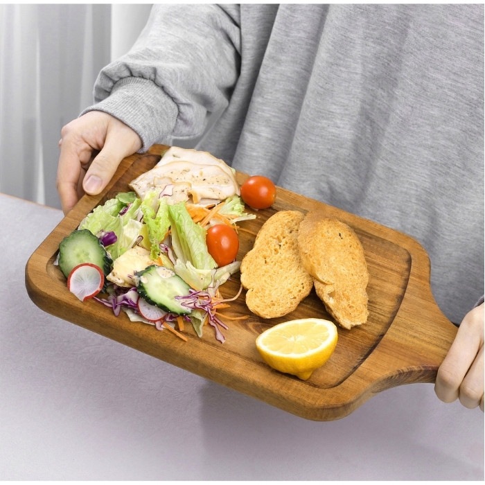 サイズ:約40×20×2.0cm 重量:約660g 材質:天然木(アカシア材 食用オイルコーティング) 天然木のため色味や木目に個体差があります。天然素材ならではの風合いや個性としてお楽しみ頂けましたら幸いです。 メンテナンス:オリーブオイルやピーナッツオイルなどで、表面を拭いてください。天然素材の特質をご理解いただき、末永くお付き合い頂けますと幸いです。