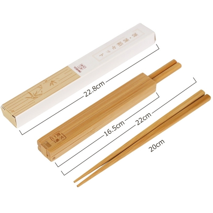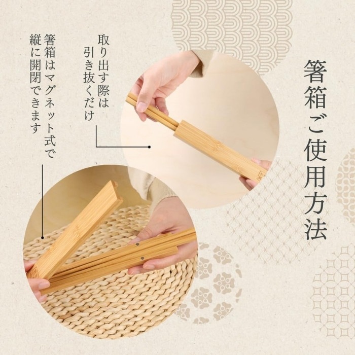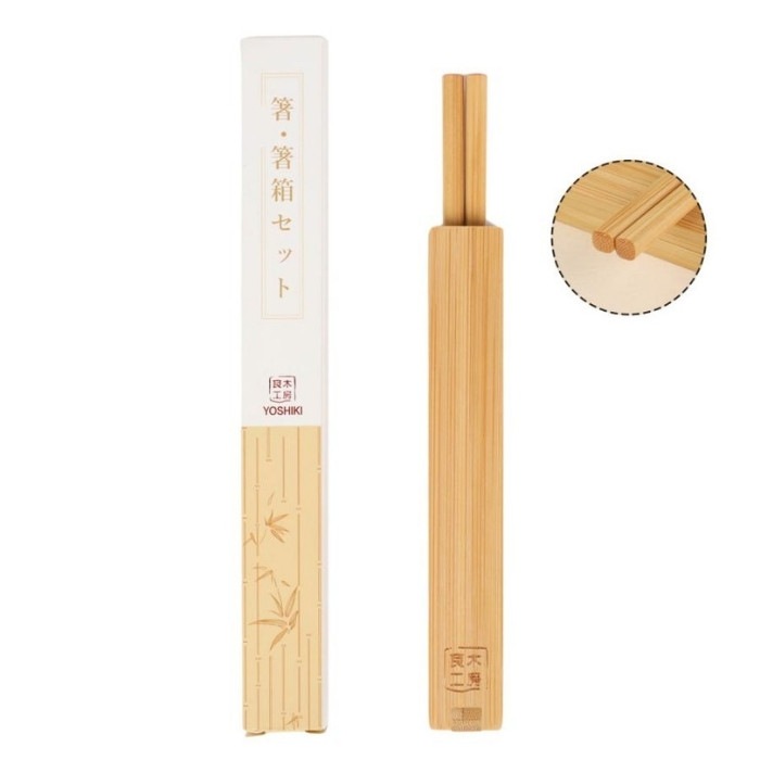 サイズ箸箱:16.5×2.5×1.6cm 箸:20cm 差し込むだけの簡単収納で、お弁当でも外食でも持ち運びに便利な箸箱セットです。 材質:天然竹(FSC認証取得) ※食器洗浄機に対応しておりません。